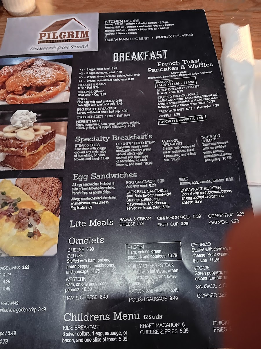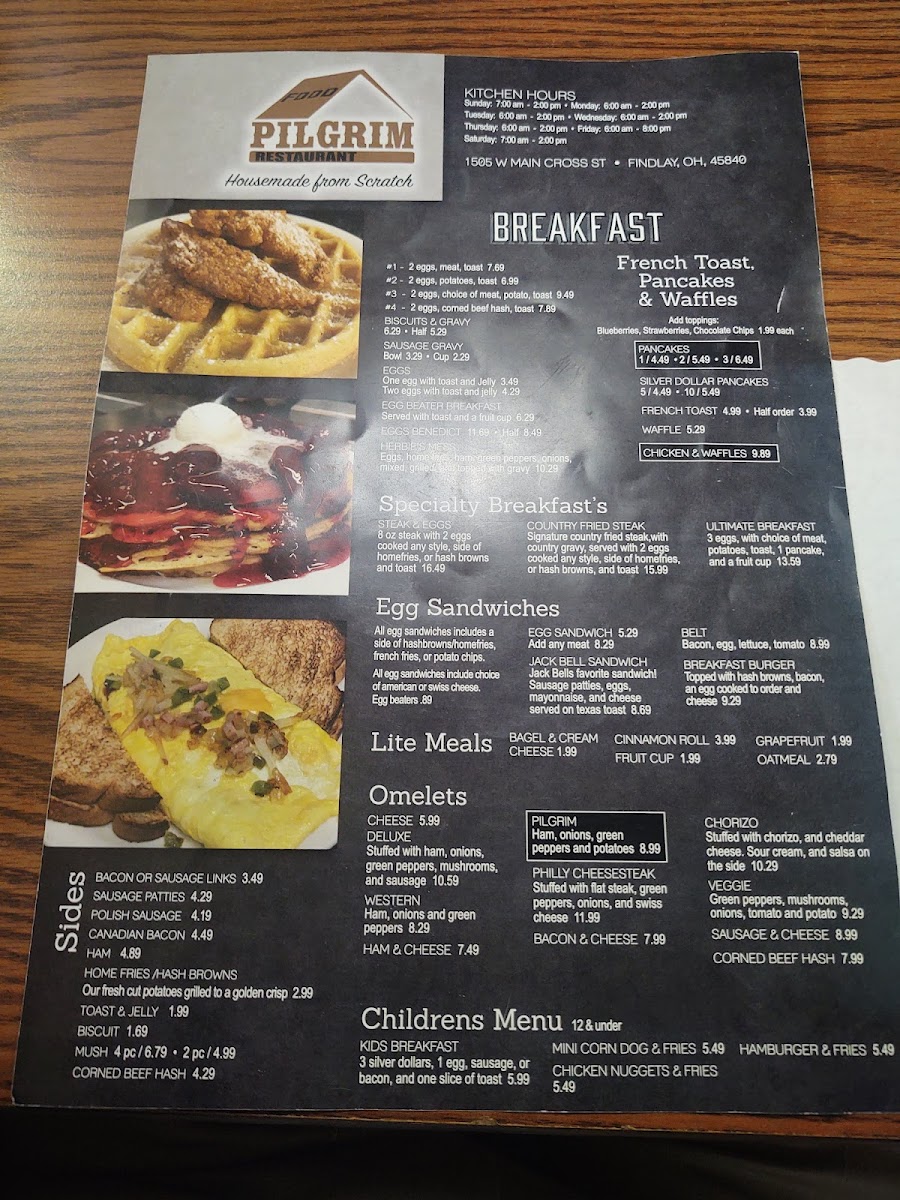 Pilgrim Restaurant - Findlay, OH Menu (Update 2025)